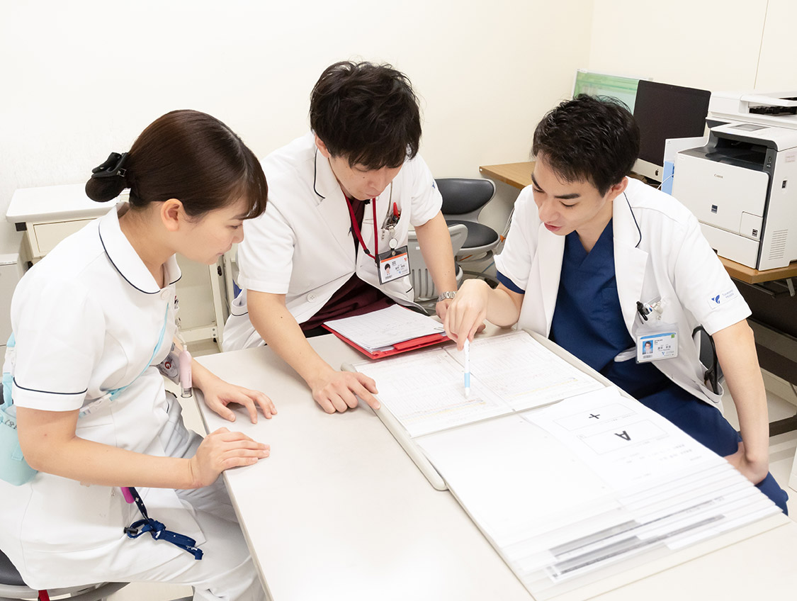病院には、患者さんがいて、医師・薬剤師・看護師・理学療法士・栄養士・臨床検査技師などの専門職がおり、診療録や看護記録、検査データや画像データが整っており、チームで進める環境が整っています。当院では、高次急性期の総合病院であるがゆえに、がんや高血圧症、糖尿病といった代表的な8領域の疾患はもとより、明日の医療のスタンダートとなる薬物療法・放射線療法・外科療法があります。